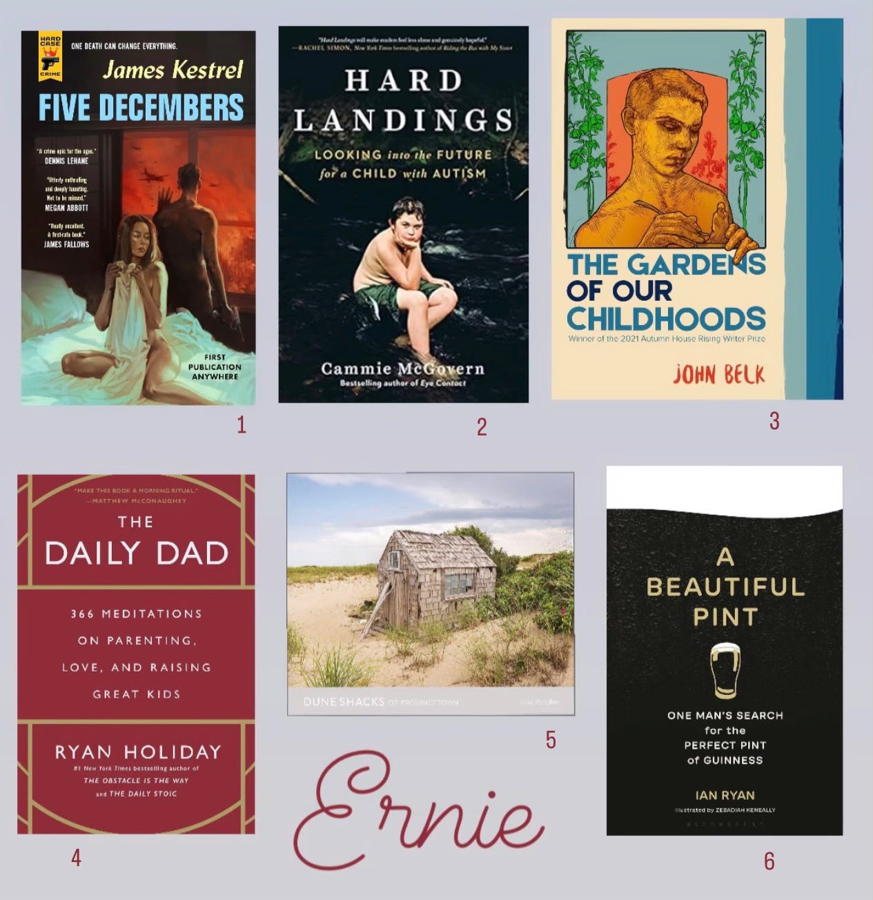 1) Five Decembers. A prosy and pulpy crime novel that follows Honolulu detective Joe McGrady as he investigates a brutal murder set against the cinematic backdrop of the Pacific on the precipice of World War II. Mystery, love, humanity, and history collide in this detailed drama that never drags.